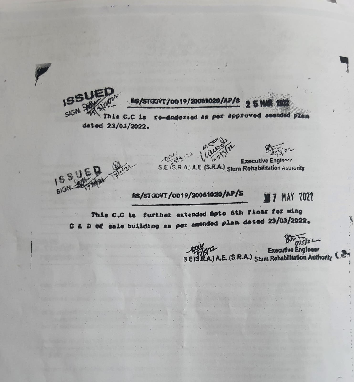बाद में 17/05/2022 को जारी किया गया 17 माले तक सीसी