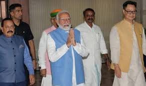 नई दिल्ली। अट्टारहवीं लोकसभा के गठन के बाद आज भारतीय जनता पार्टी एवं राष्ट्रीय जनतांत्रिक गठबंधन के संसदीय दल की बैठक में प्रधानमंत्री नरेन्द्र मोदी का स्वागत किया गया और प्रधानमंत्री मोदी ने नये सांसदों को मर्यादित व्यवहार एवं आचरण की नसीहतें दीं। मोदी ने संसद के पुस्तकालय भवन में जीएमसी बालयोगी सभागार में हुई राजग संसदीय दल की बैठक की अध्यक्षता की। राजग की यह बैठक ऐसे समय में हुई जिस समय संसद के संयुक्त सत्र में राष्ट्रपति द्रौपदी मुर्मू के अभिभाषण पर धन्यवाद प्रस्ताव पर लोकसभा और राज्यसभा में चर्चा चल रही है।