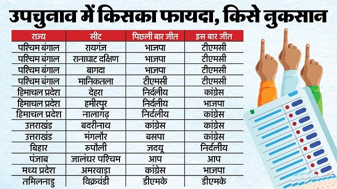 उपचुनाव में सात राज्यों की 13 विधानसभा सीट पर कहां-कौन जीता?