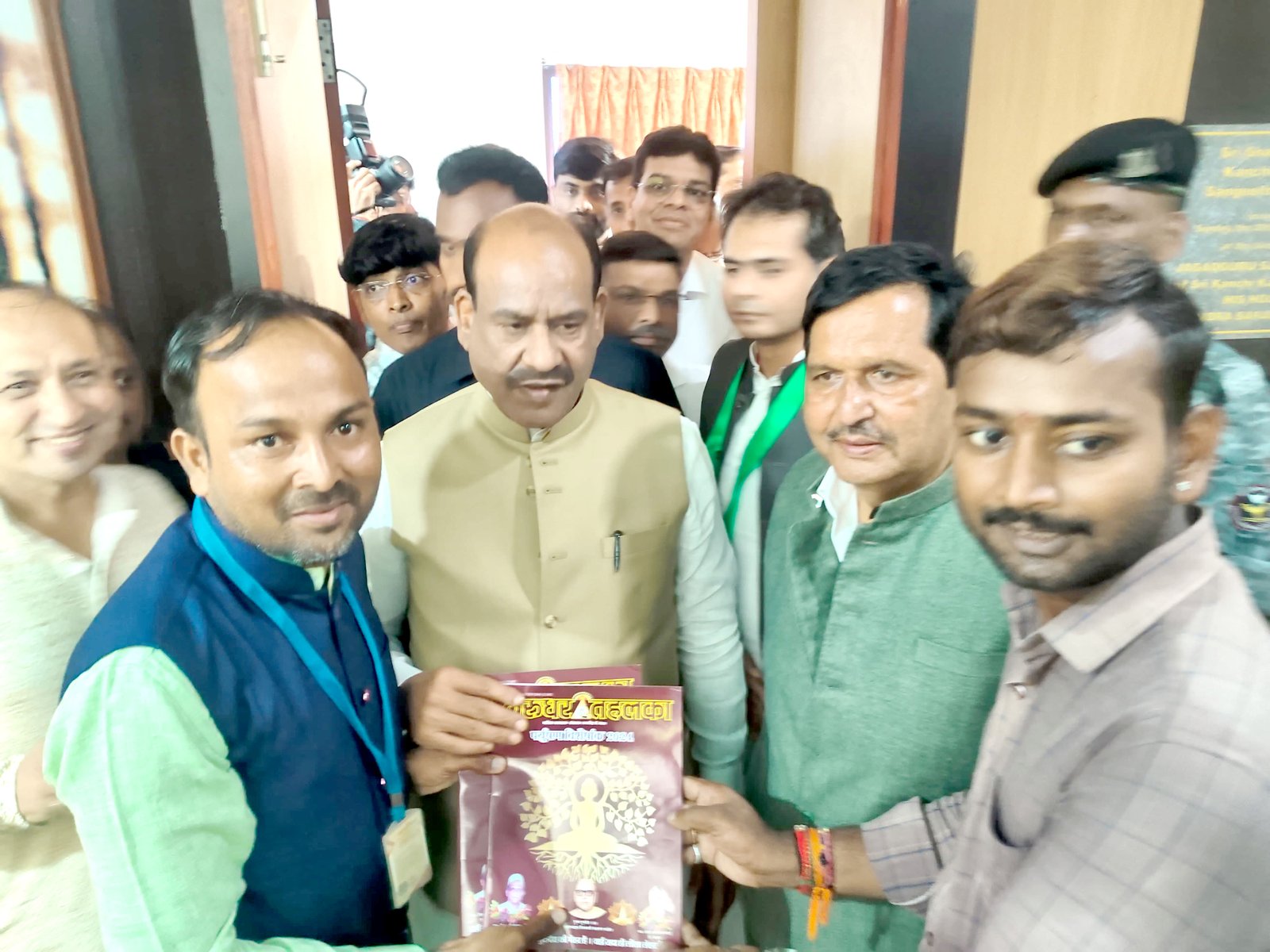 मुंबई - भारत जैन महामंडल के चारो फिरको के क्षमापना समारोह में लोकसभा स्पिकर श्री ओमजी बिरला सांसद श्री मिलींदजी देवडा , महाराष्ट्र के केबीनेट मंत्रीमहोदय श्री मंगलप्रभातजी लोढ़ा , श्री पार्श्वनाथ जैन तीर्थ के अध्यक्ष श्री रमेशजी मुथा भारत जैन महामंडल के राष्ट्रीय अध्यक्ष श्री सी .सी डाँगी , भाजपा दक्षिण मुंबई के उपाध्यक्ष श्री पवनजी मेहता , मेटलमार्केट के गजेन्द्रजी मुणोत , श्री मांगीलालजी मेहता , प्रशांतजी जवेरी, सुरेशजी जैन (लायन) , उत्तमजी शाह , एवं भारत जैन महमंडल के पदाधिकारी , जैन समाज के चारो फिरको के एक से बढ़कर एक श्रेष्ठीवर्यों ने श्री नाकोडा पार्श्वनाथ जैन तीर्थ अध्यक्ष श्री रमेशजी मुथा को जैन रत्न से सम्मानित किया ! ऐसे शुभ अवसर पर इन्हीं सभी महानुभावो के कर कमलो से मरूघर का तहलका पर्युषण विषेशांक पुस्तक 2024 का विमोचन हुआ। पुस्तक देखकर श्री ओम बिरला जी , सांसद मिलींद देवडाजी , केबीनेट मंत्री श्री मंगलप्रभातजी लोढ़ा , श्री रमेशजी मुथाने भूरी-भूरी प्रशंसा की और कहा पुस्तक इसी प्रकार की होनी चाहिए जिसमे ज्ञान की बाते हो पुस्तक को केटलॉक नही बनाना चाहिए जितनी छोटी पुस्तक होगी पाठकगण उसे चाव से पढ़ेंगे नहीं तो एक नजर मार कर साईड कर देंगे। कुलमिलाकर रविवार 22/9/024 का दिन जैन समाज के लिए सुनहरा व यादगार दिन रहा जगह-जगह रथ यात्रा क्षमापना दिन की उजवनी व जैन बंधुओ के मिलन समारोह हुए समाज की एकता व अखंडता बढ़ी व दिन के महात्सवो का समापन हुआ ।