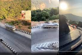 मुंबई-पुणे एक्सप्रेसवे पर हुए ट्रक एक्सीडेंट का वीडियो आया सामने...